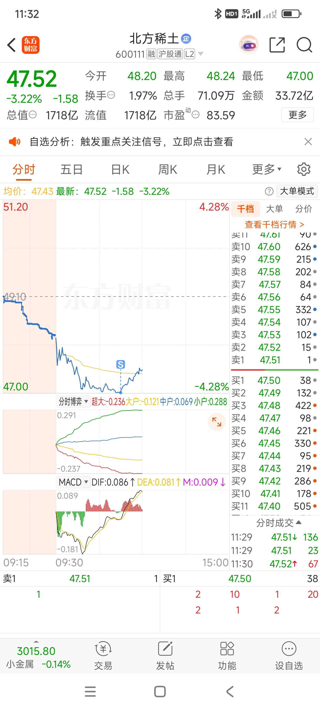 $北方稀土(SH600111)$ 昨天高点买,今低点卖