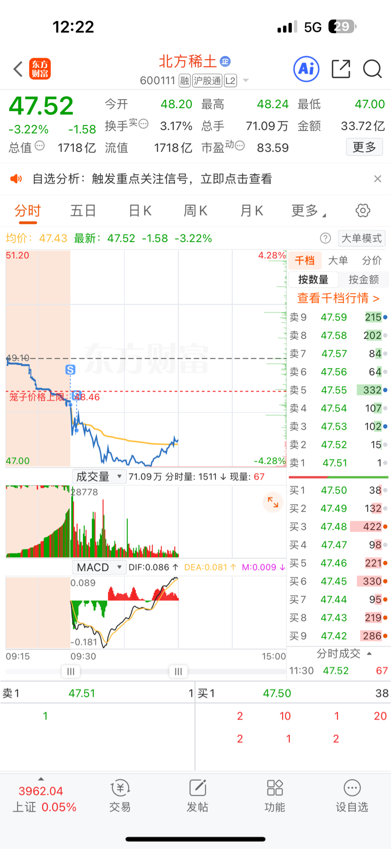$北方稀土(SH600111)$ 垃圾,早知道竞价全跑了,