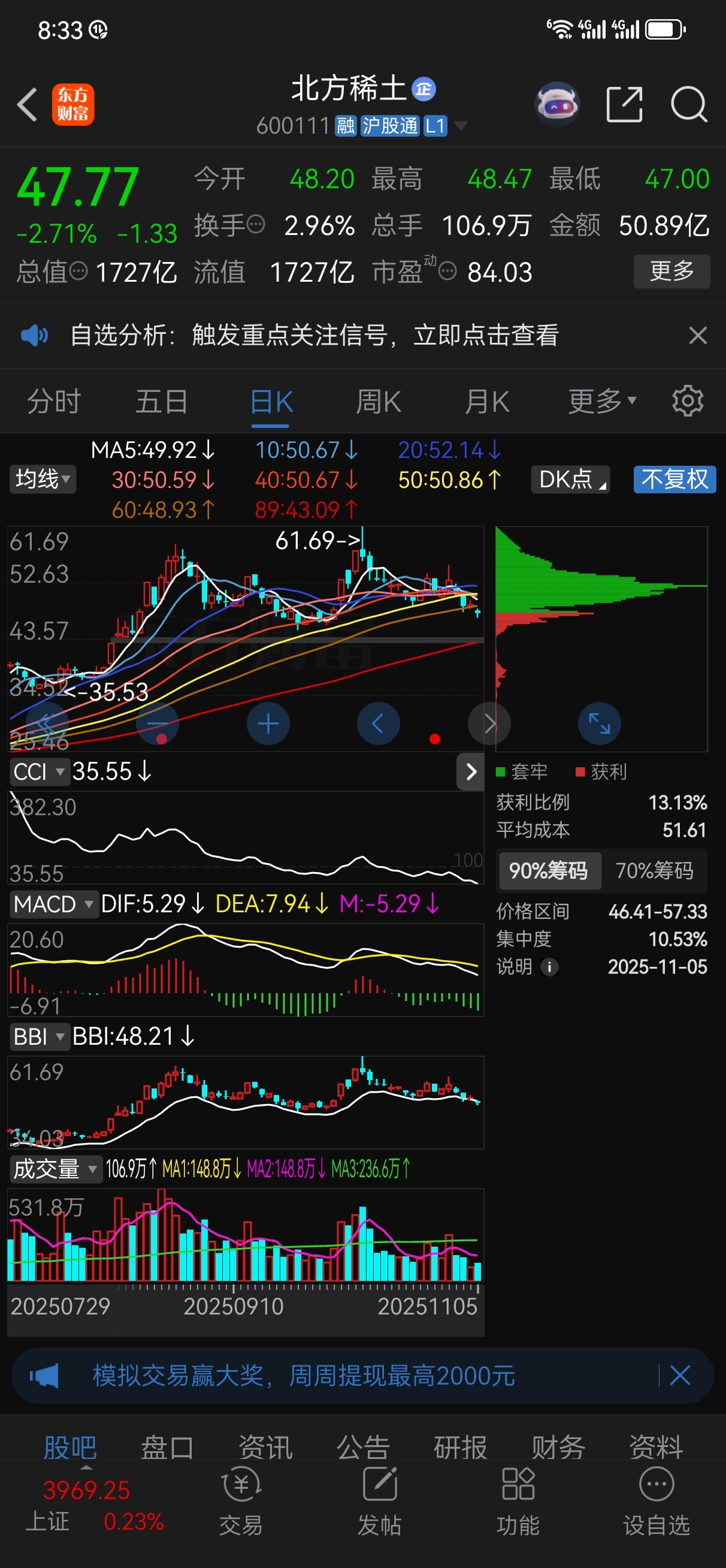 $北方稀土(SH600111)$ 下面缺口会不会趁机一起补上,60日线已破位。