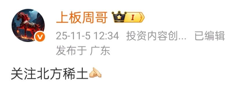 前几天就说了可以关注稀土板块,今天粉丝跟上吃肉