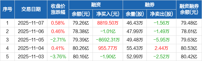 北方稀土:融资净买入8819.5万元,融资余额79.26亿元(11-07)