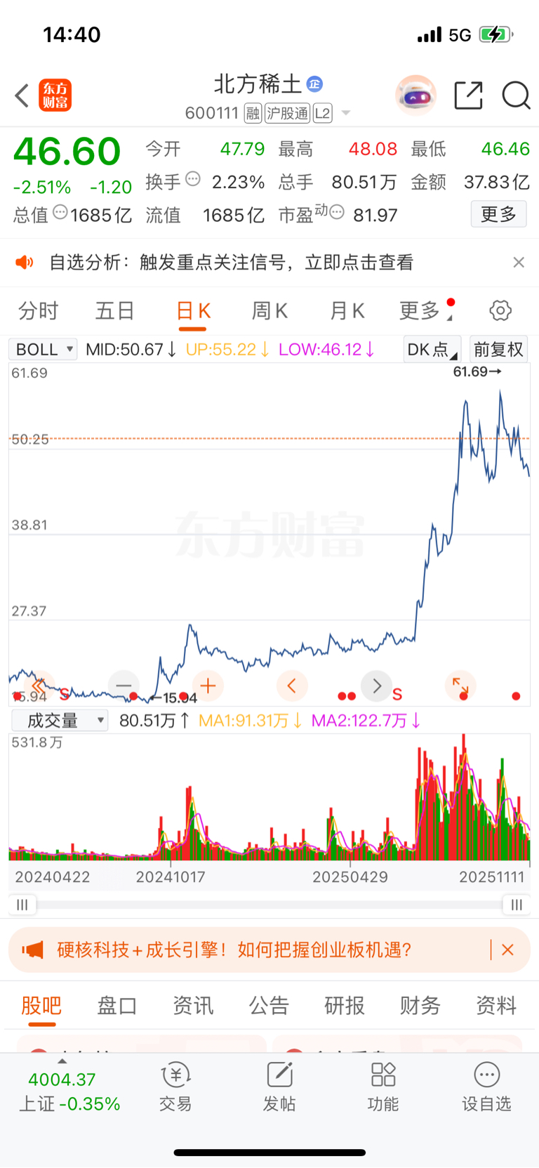 $北方稀土(SH600111)$ 标准M顶,持续不看好。40等你,接你回家。