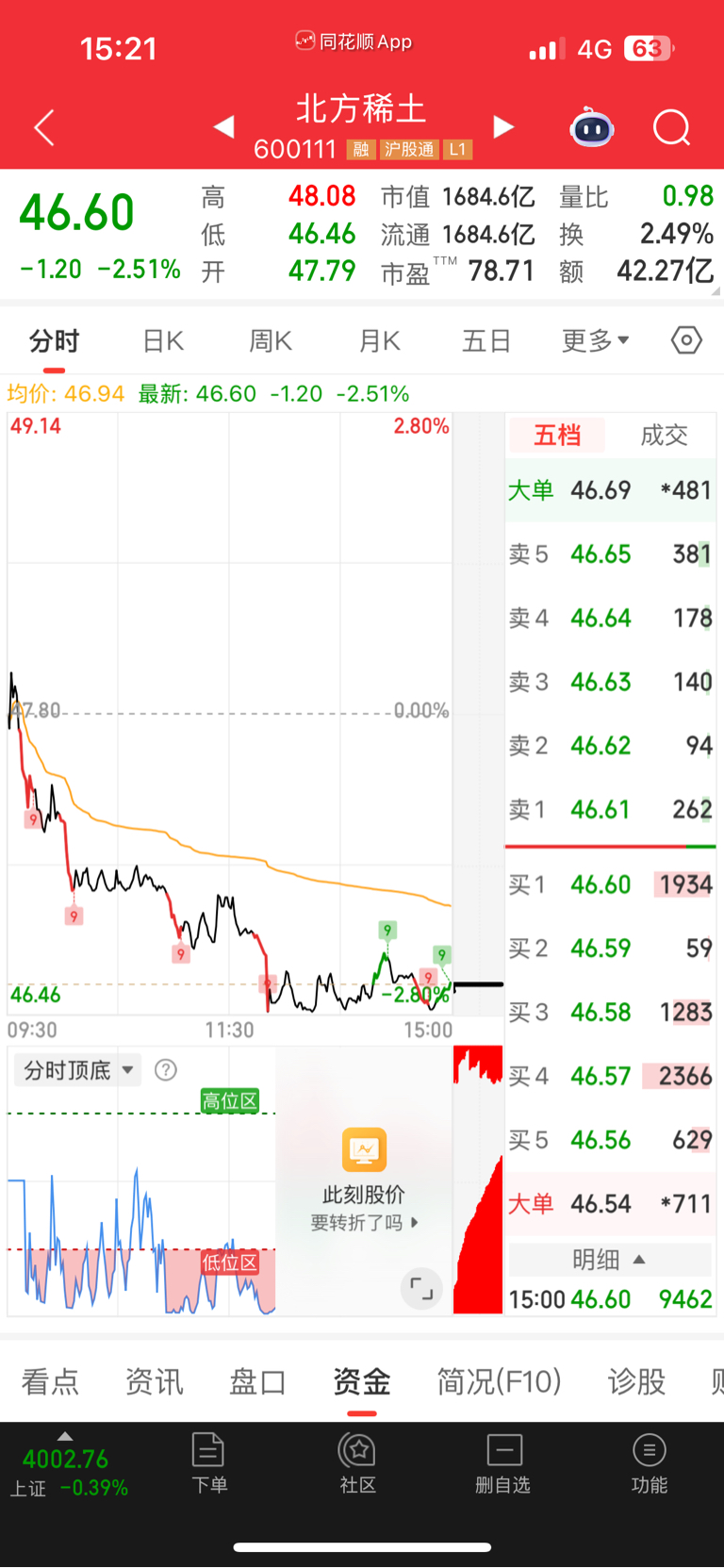 $北方稀土(SH600111)$ 散户疯狂的接盘。比如我6成仓位死这里。