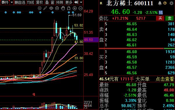 二:北方稀土:11月11日日收盘并没有在日线图看到止跌序号,长短分时也没止跌序号。唯一:在5分钟图出现止跌反弹信号。