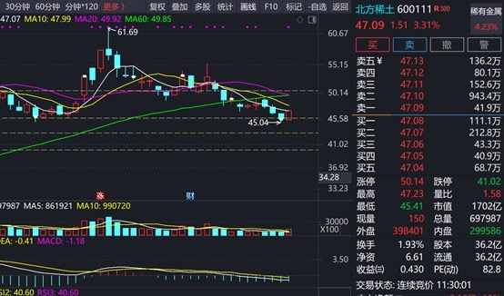 北方稀土昨日写到股价跌到了颈线位置,重点观察是否继续跌破颈线,如果跌破建议退出观