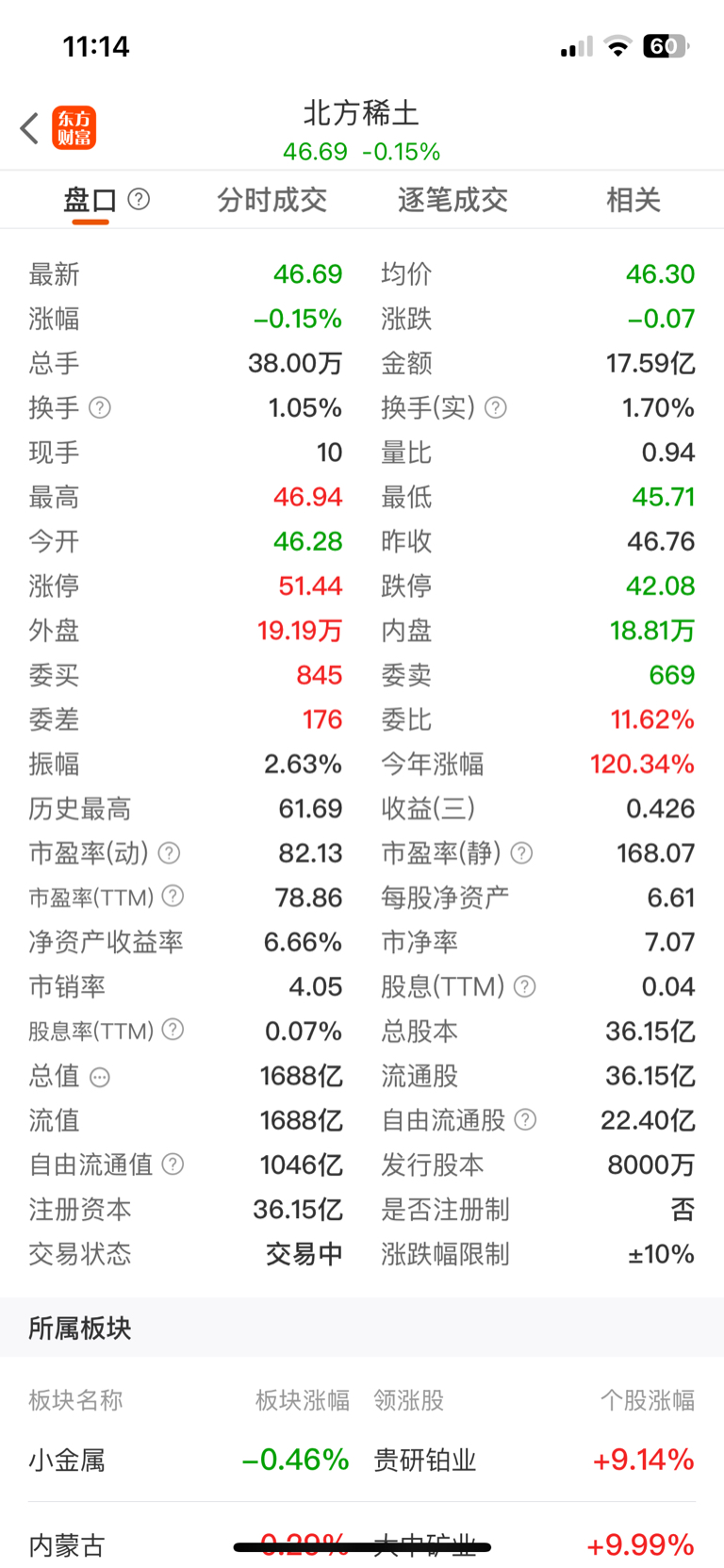 $北方稀土(SH600111)$