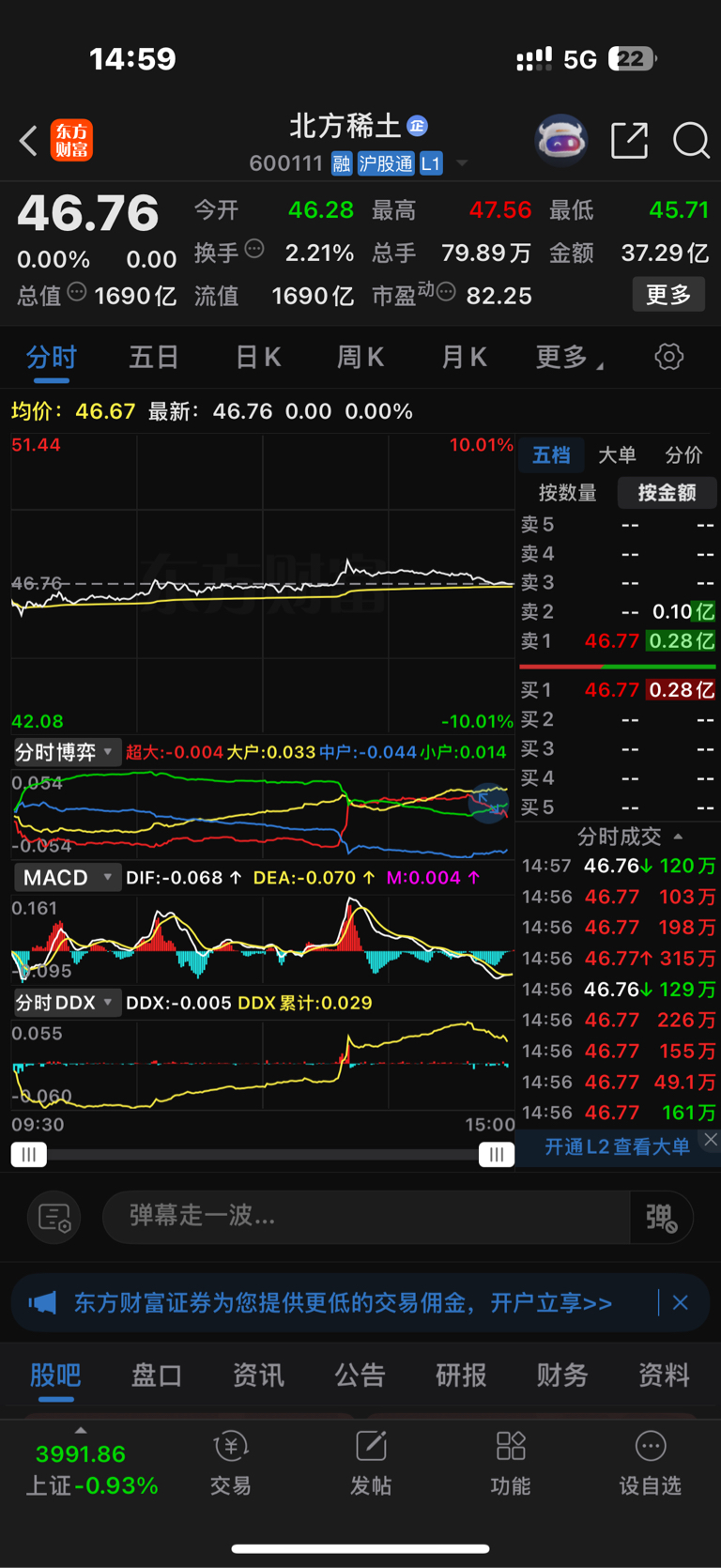 $北方稀土(SH600111)$ 庄家对价格精准控制,两天一点都没有涨,这可是1700亿盘子