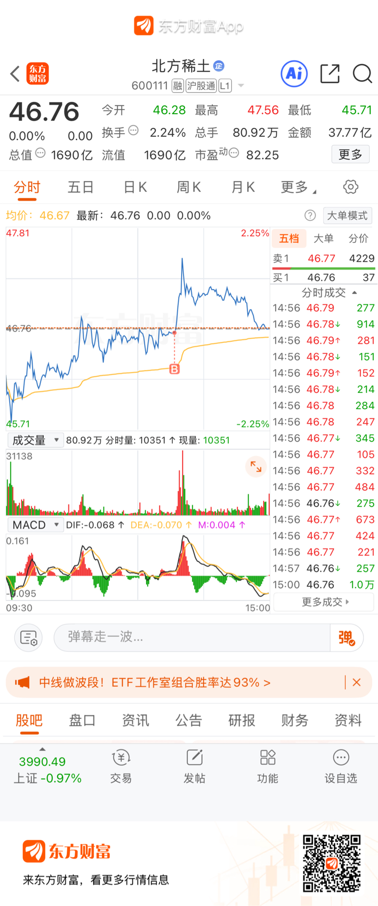 $北方稀土(SH600111)$ 我一度以为我是天才