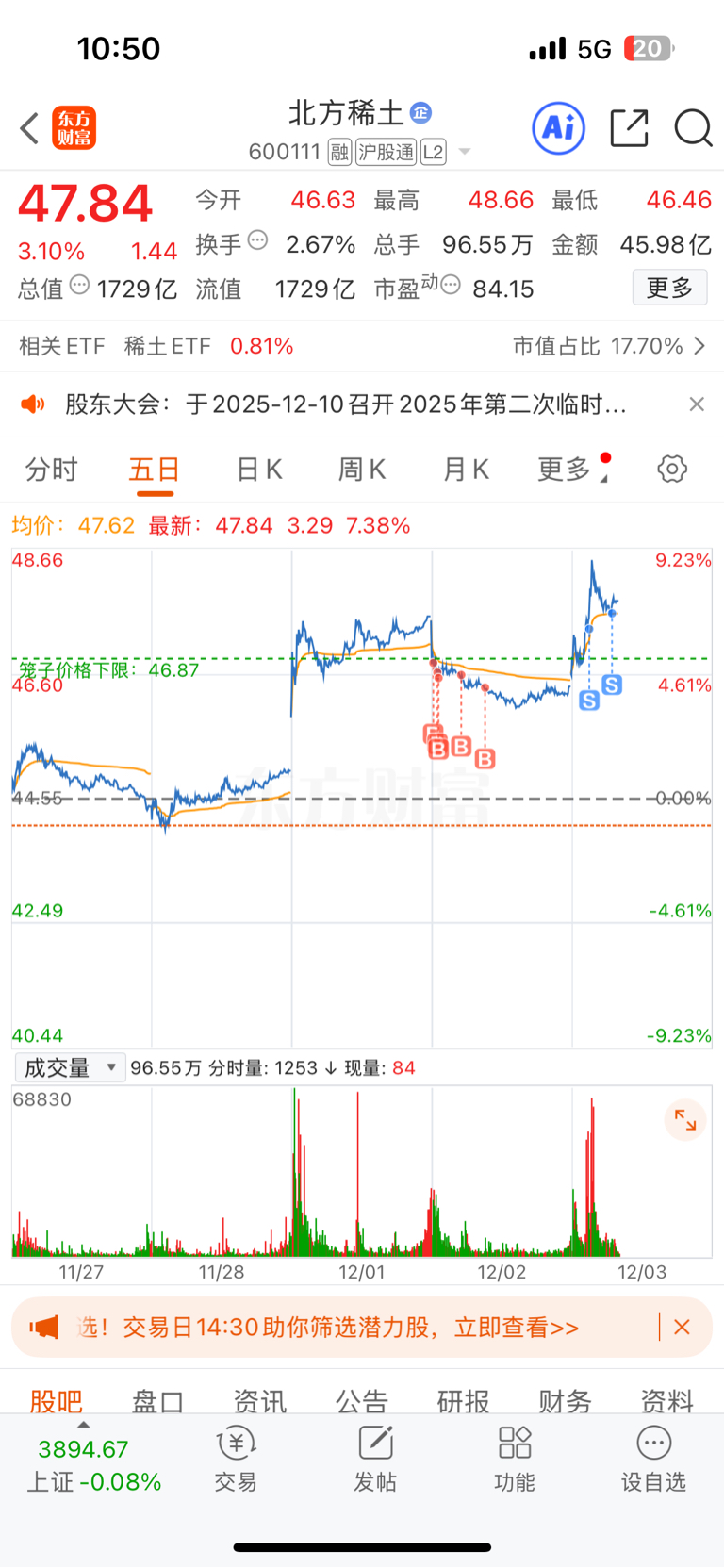$北方稀土(SH600111)$ 服了重仓被洗了