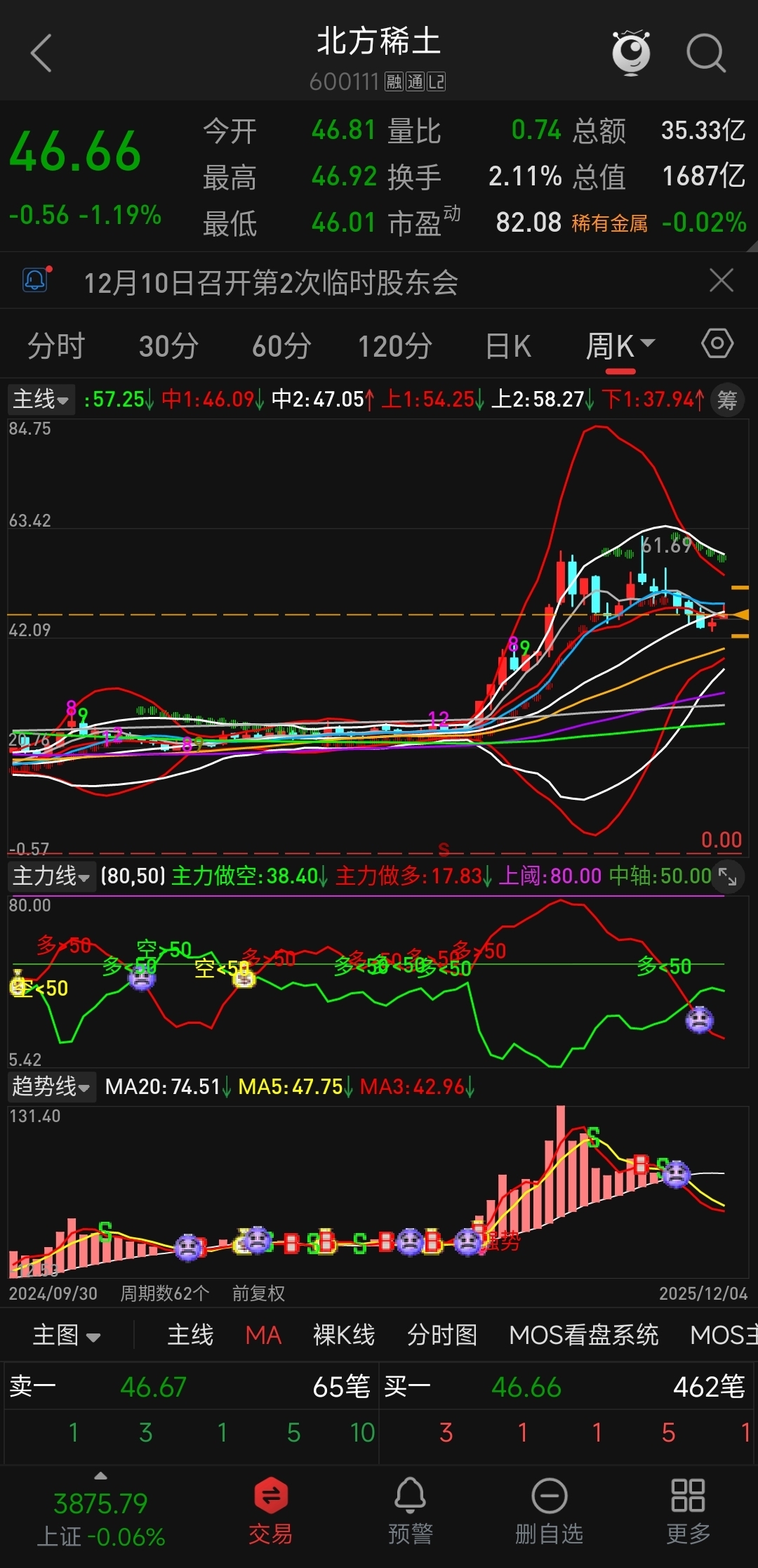 收口,持续收口调整,主力线、趋势线死叉。周线前期涨得有多猛,周线级别调整就有多狠
