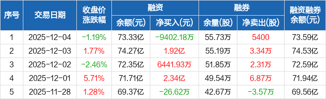 北方稀土:融资净偿还9402.18万元,融资余额73.33亿元(12-04)