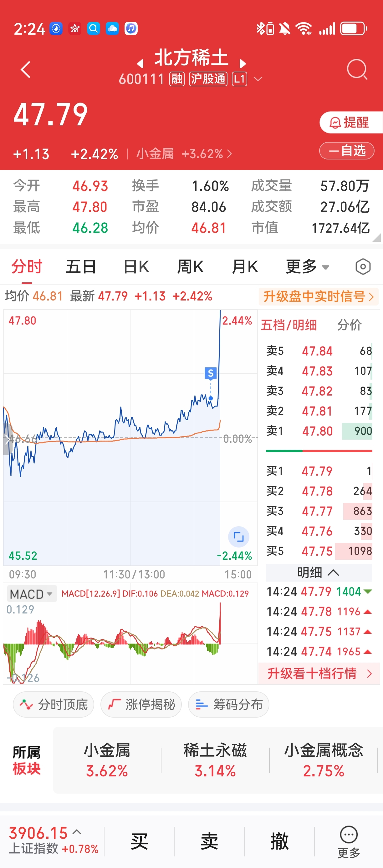 $北方稀土(SH600111)$ 看来我妨碍它上涨了