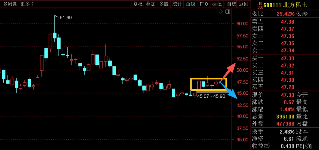 $北方稀土(SH600111)$ 前期高位回落后,短线这里跳空做了个小的箱体震荡,接下来重点就看这个箱体的得失,能站稳带量突破可以加仓跟随,但不能突破,反而往下回落的话就要注意再次回落的风险了,控制仓位应对优先。#炒股日记# #周末杂谈#