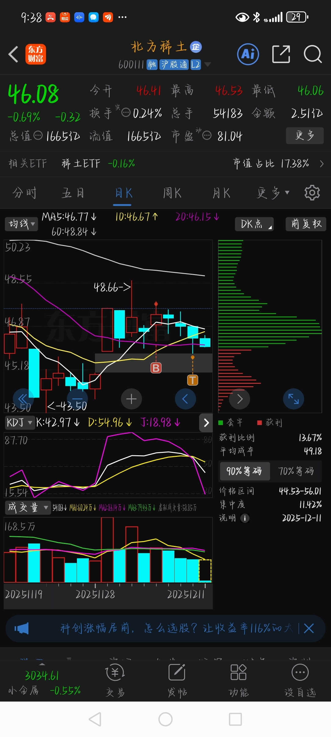 $北方稀土(SH600111)$ 买入就是逆市4连大跌,真没招了好吧,外围天天换着涨,这里只有跌