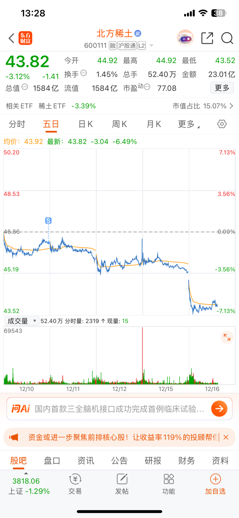 $北方稀土(SH600111)$