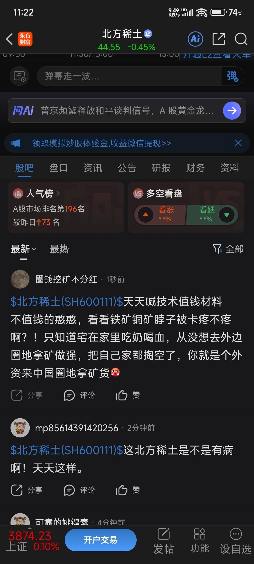 温馨提示: 1.根据《证券法》规定,禁止编造、传播虚假信息或者误导性信息,扰乱证券市场;2.用户在本社区发表的所有资料、言论等仅代表个人观点,与本网站立场无关,不对您构成任何投资建议。用户应基于自己的独立判断,自行决定证券投资并承担相应风险。《东方财富社区管理规定》