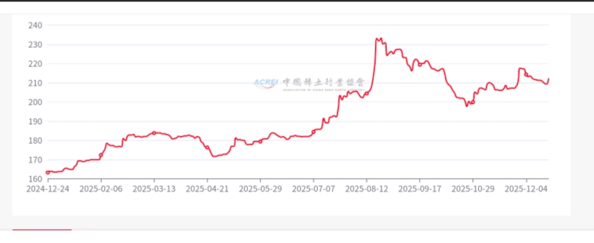 只能一个产品一个产品的查。一共有22个产品,共涉及11种稀土元素,排名第一的是经济价值最高的氧化镨钕,但是你看看下图,比行业协会的走势图稍强,但最大也是只能看13个月的走势!!!