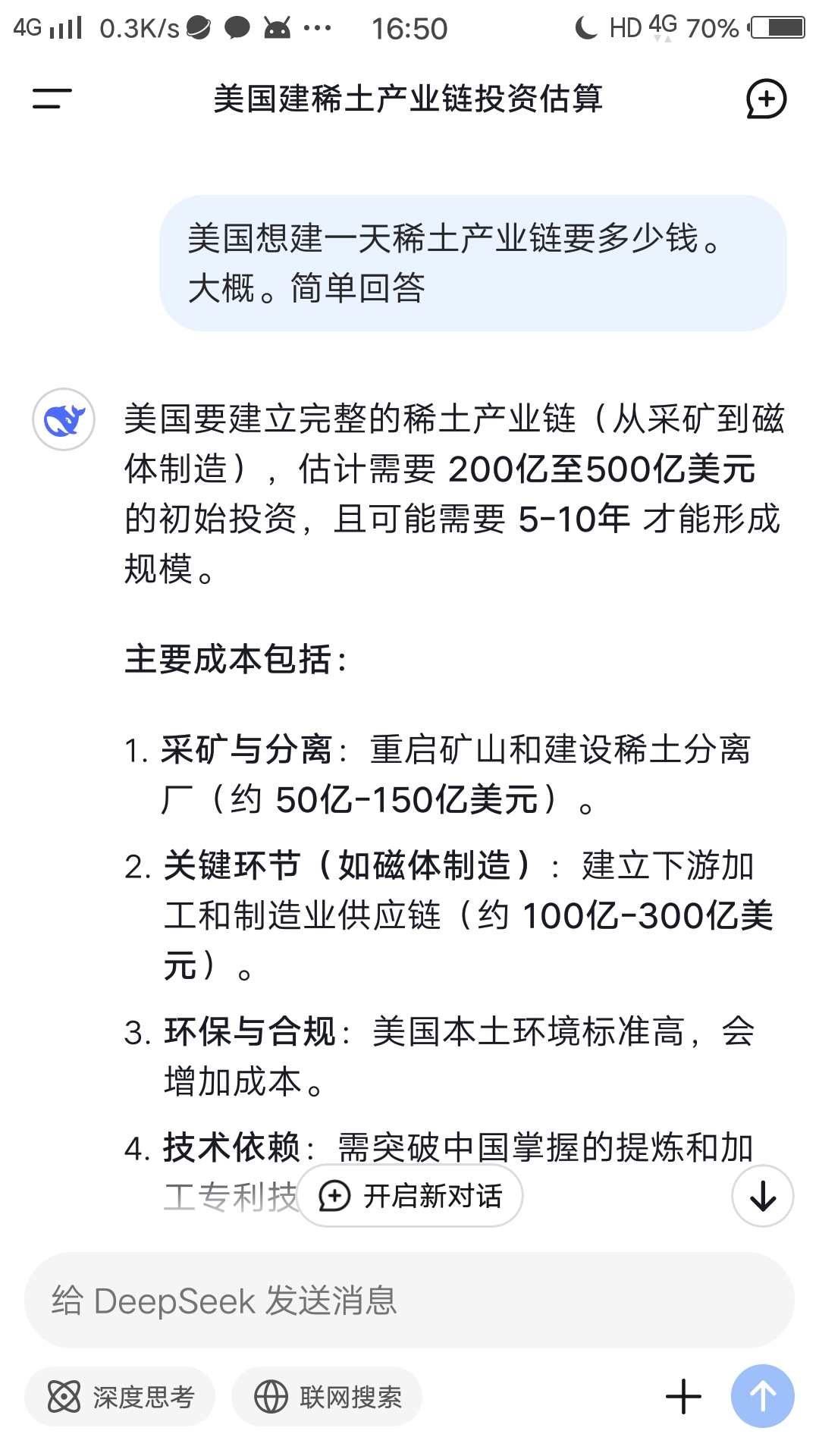老美最简单的方法就是花500亿美元越3500亿把半个北方稀土都买下来。