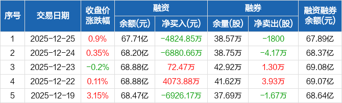 北方稀土:融资净偿还4824.85万元,融资余额67.71亿元(12-25)