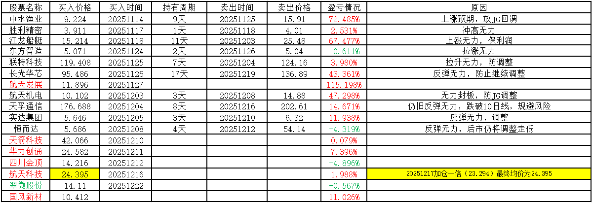 $大业股份(SH603278)$(SZ603278):商业航天+腱绳+胎圈钢丝+扭亏+人形机器人+光伏。该股概念比较多,且都是当前热点,这也侧面印证公司GC全面转型公司业务形成了商业航天、机器人与光伏的集合体,其估值是具备上升预期的。从技术的角度来看,该股在12月8日放量突破60日线后,其后连续拉涨,第三天大幅高开拉涨最终放巨量下跌调整,不过其后该股并未创出新低,而是在上次9.00附近上方的支撑位稳定,其后稳稳走高,前日该股再次温和放量拉涨封板,这是趋势要起来的表征,昨日该股再次放量封板,这是趋势起来的信号,料后市或启动加速上涨行情。料今日该股有望继续拉涨,如果分歧走水的话,机遇大于风险,值得研究。