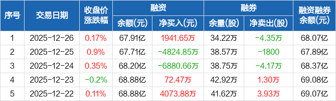 北方稀土:融资净买入1941.65万元,融资余额67.91亿元(12-26)