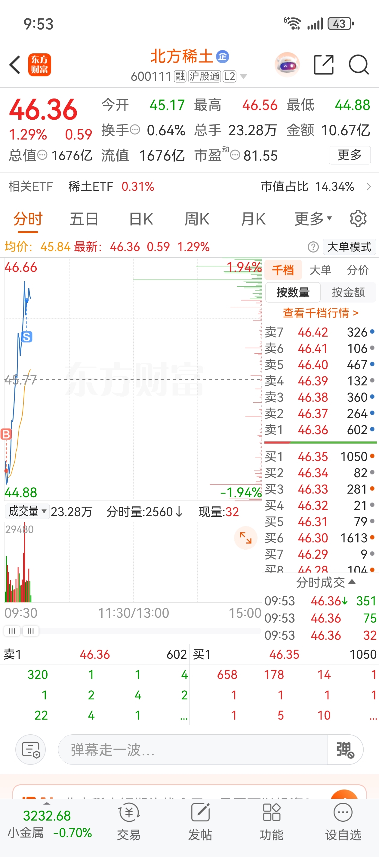 $北方稀土(SH600111)$ 下来吧,让我再抄一下