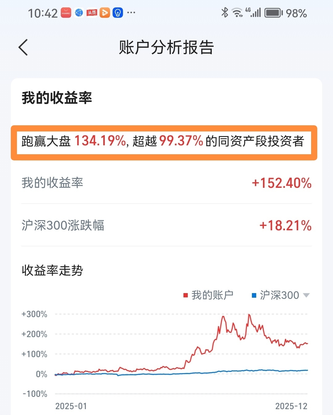 2025年收官,今年的收益率是152%。2024年的收益率是137%。2026年