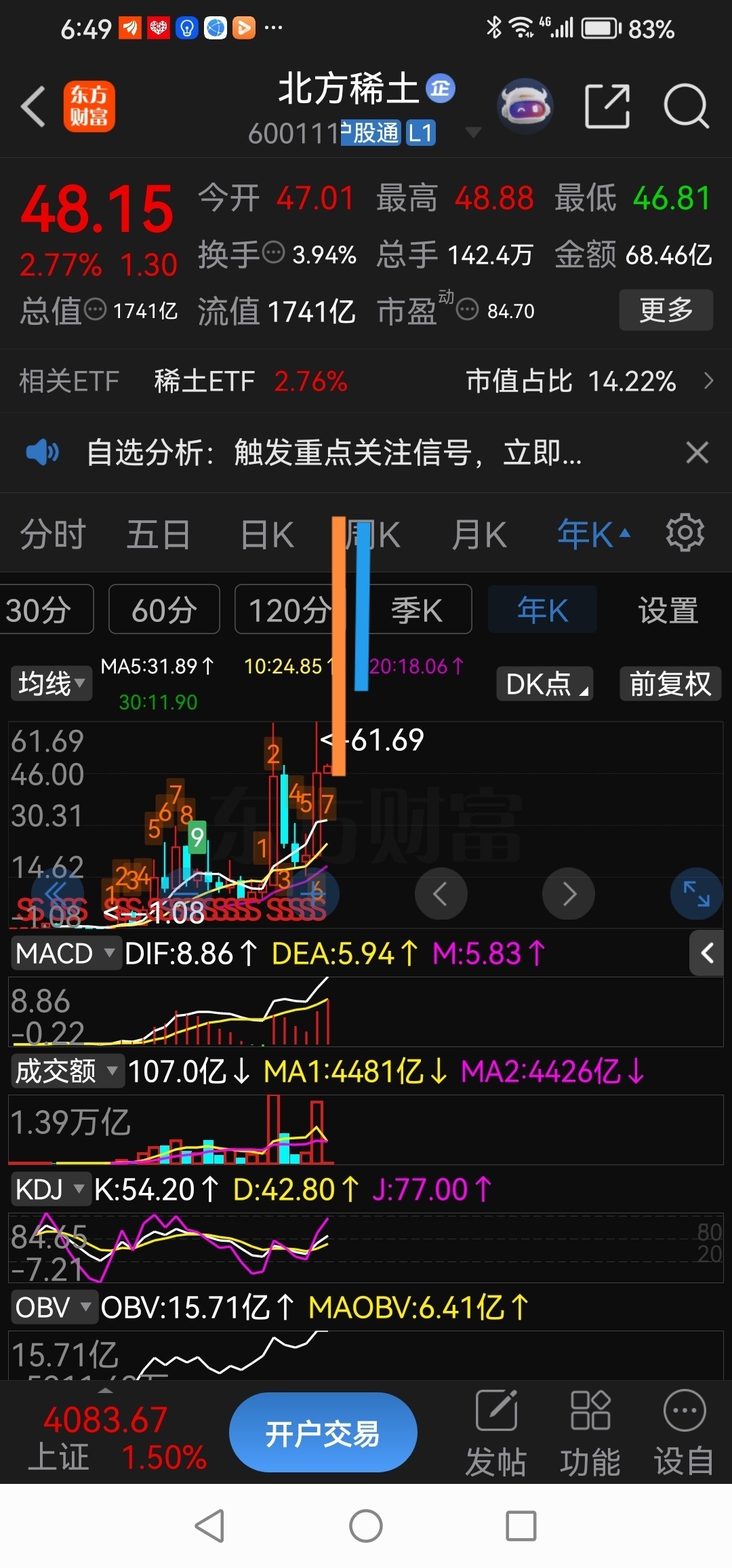 北方稀土今年高点在138至181元,时间在2或3季度。大盘在3月份暴涨后可能进入