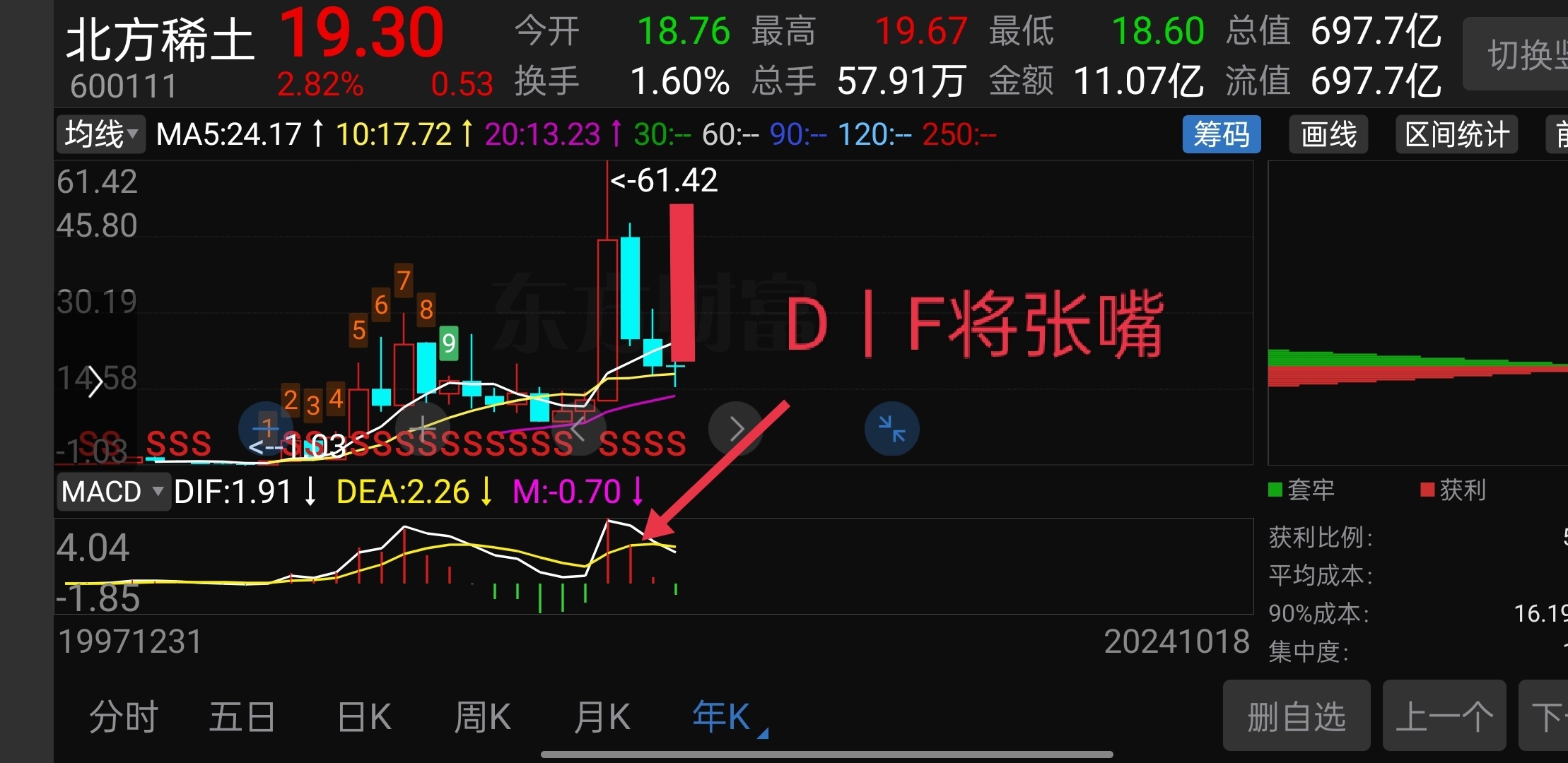 北方稀土今年高点在138至181元,时间在2或3季度。大盘在3月份暴涨后可能进入横盘,横盘,横盘过后就是小心,小心,更要小心。小心完了就是套人。套往三年后2030年有小部分解套。个人观点,仅供参考,对错勿怪,仅供参考。2024年预判的K线图(年)添加内客再做一次2026年的仅供参考