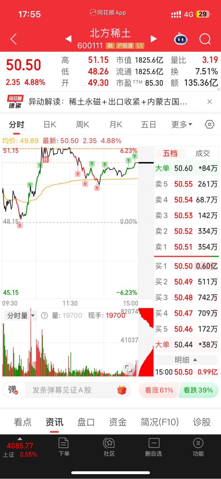 $北方稀土(SH600111)$ 各位,我吊不吊
