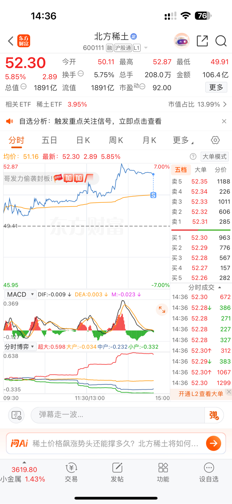 $北方稀土(SH600111)$ #炒股日记# #强势机会# 恭喜你把我吓跑了