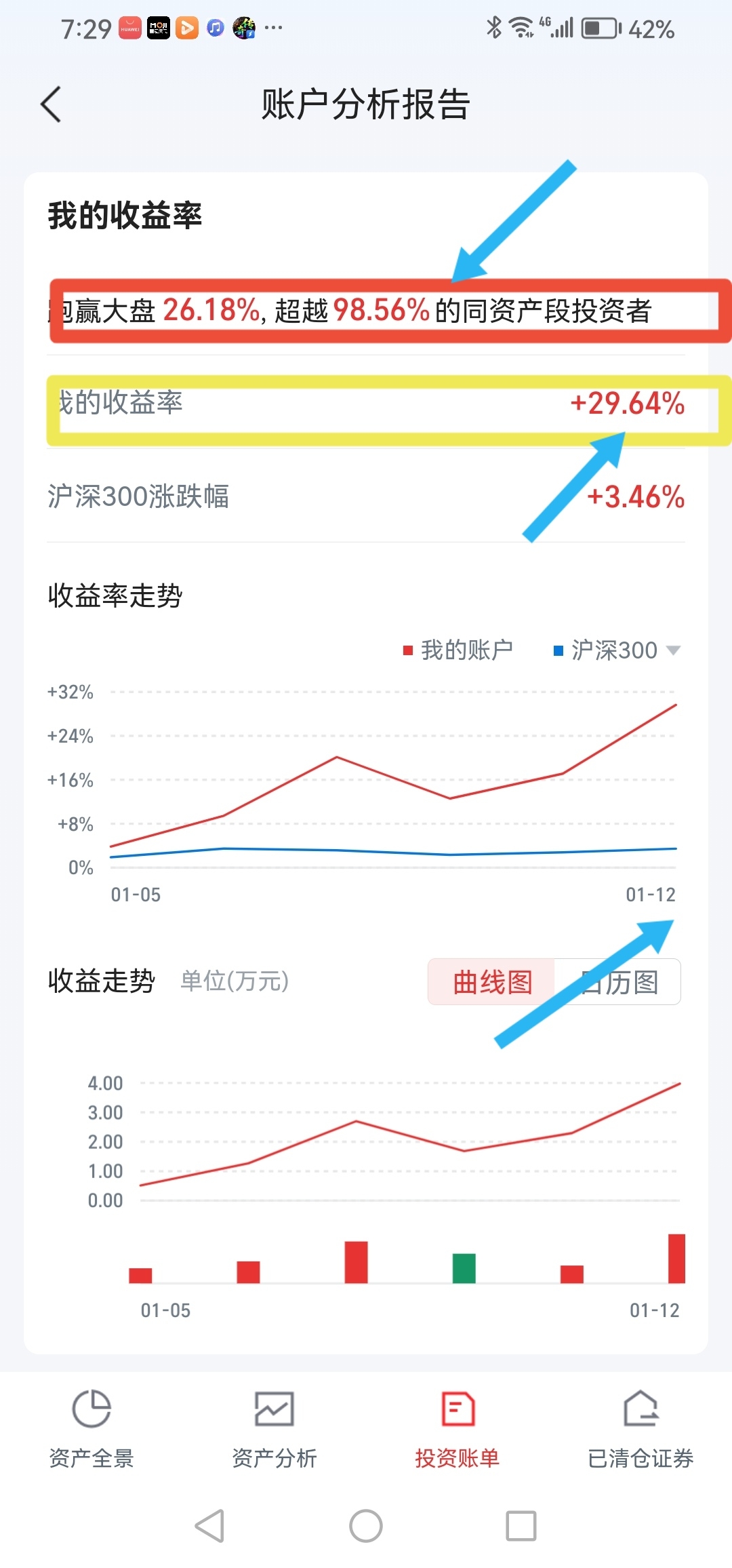 周一进账12.52%。4200点左右是修正一下还是突破向5000点不要管他,当下