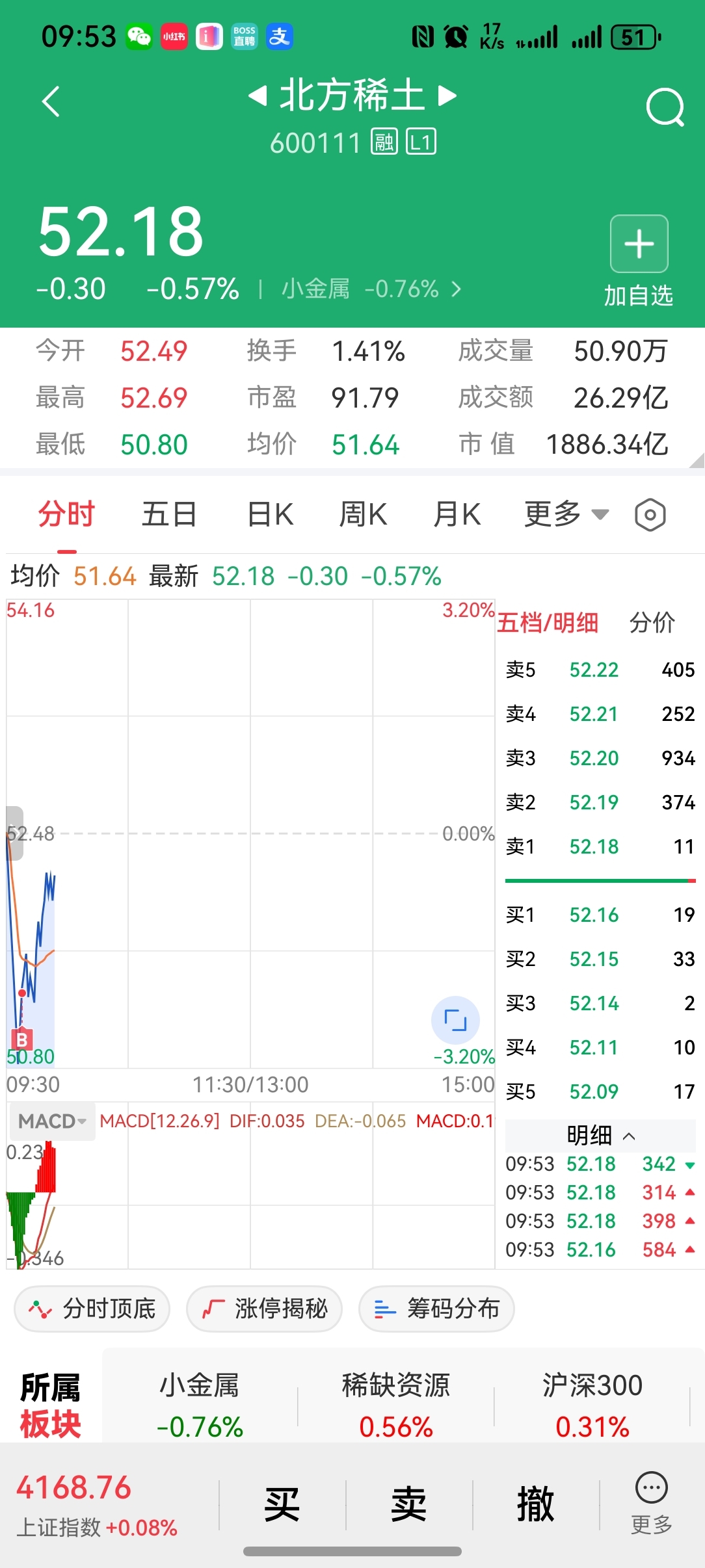 $北方稀土(SH600111)$ 头铁加仓,下午博弈收阳。