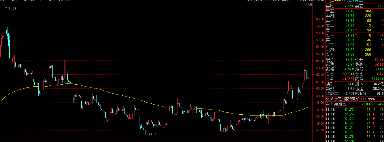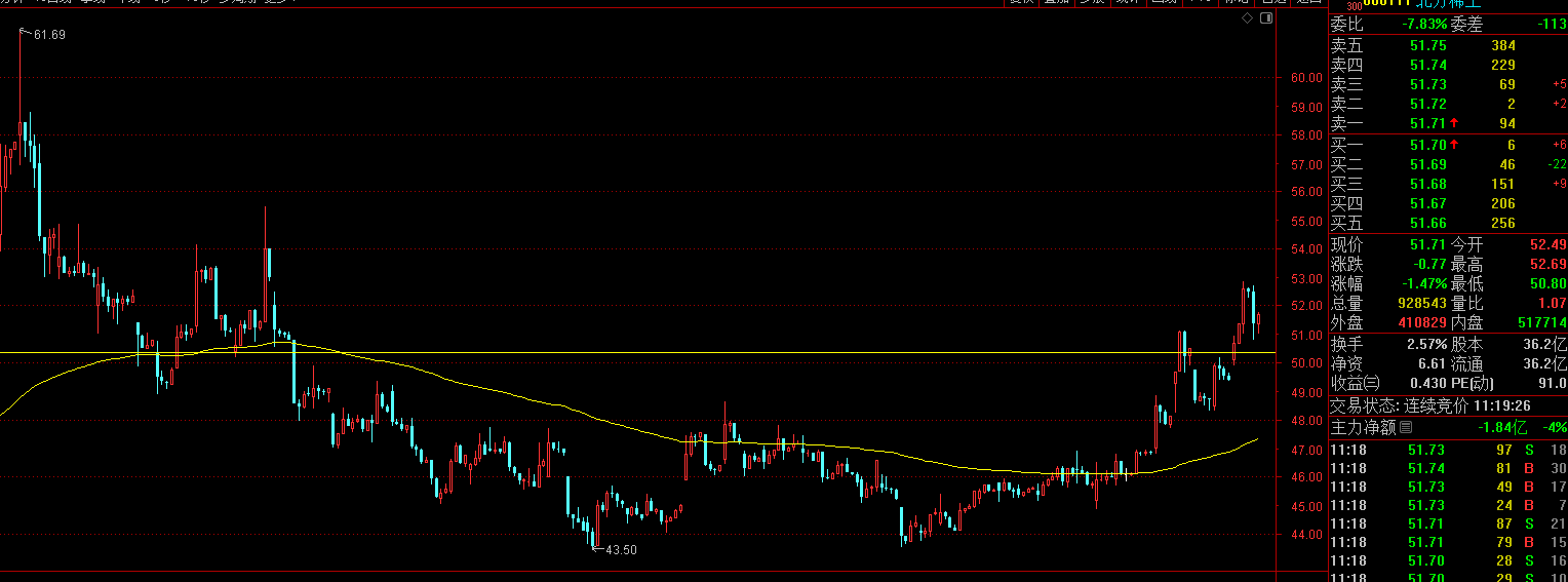 基本面优秀+近期有色普涨,洗盘到尾声,今天近两天破阻力位,今天51.7已全仓买入
