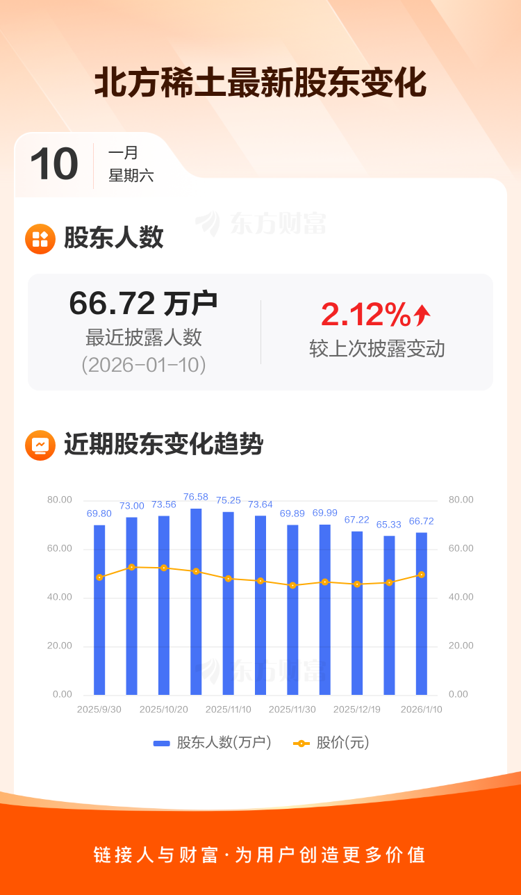 北方稀土:截至1月10日最新股东户数66.72万户,较上期增加2.12%