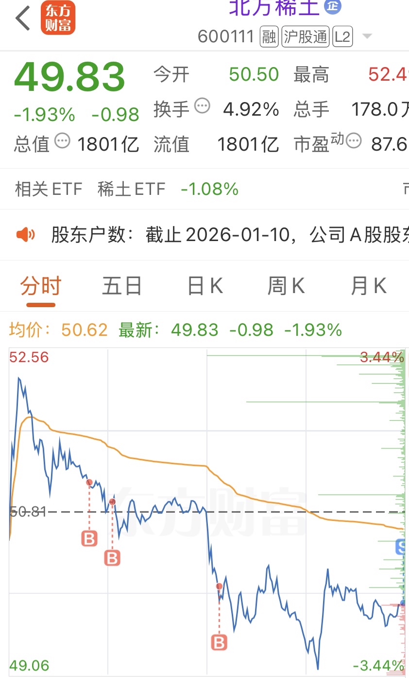 $北方稀土(SH600111)$ 尾盘割肉了,明天可以涨了!