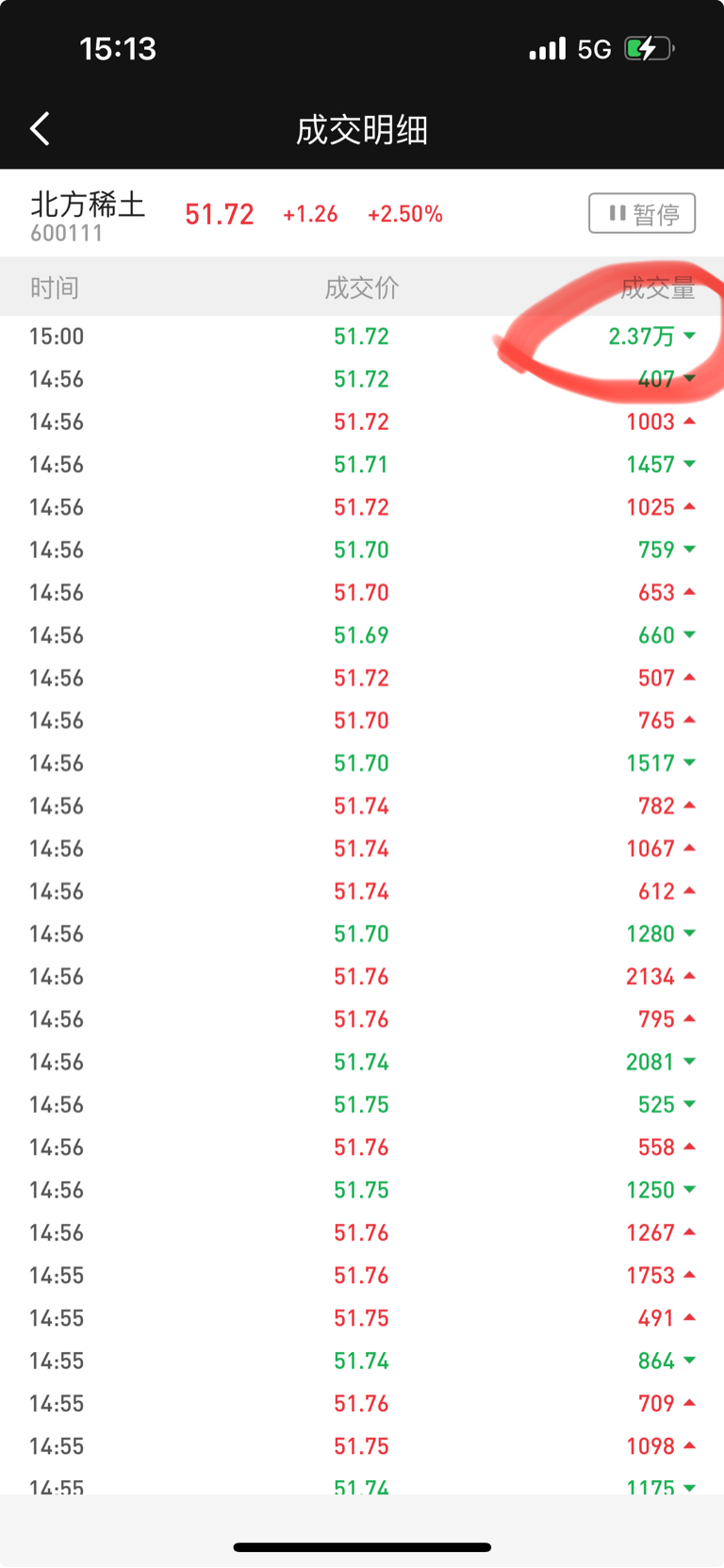 $北方稀土(SH600111)$ 哪位高手回答一下做后这2.37万什么意思,有什么寓意吗?