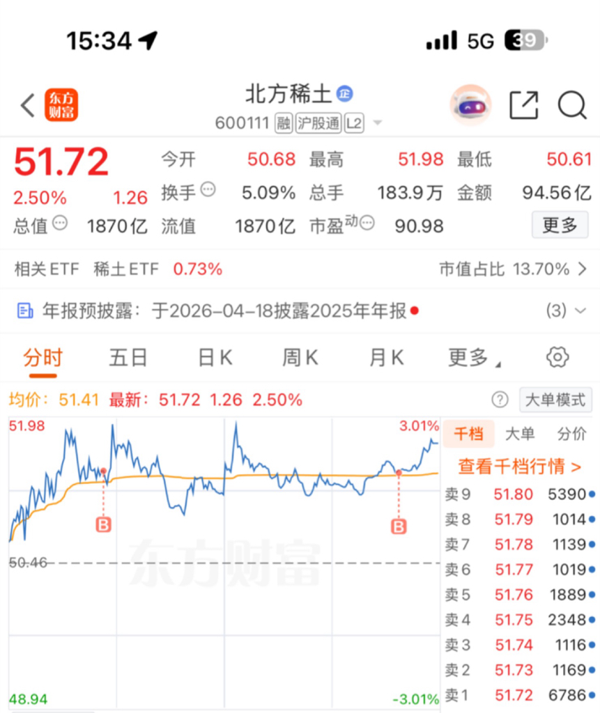 $北方稀土(SH600111)$ 明天能赚钱吗?