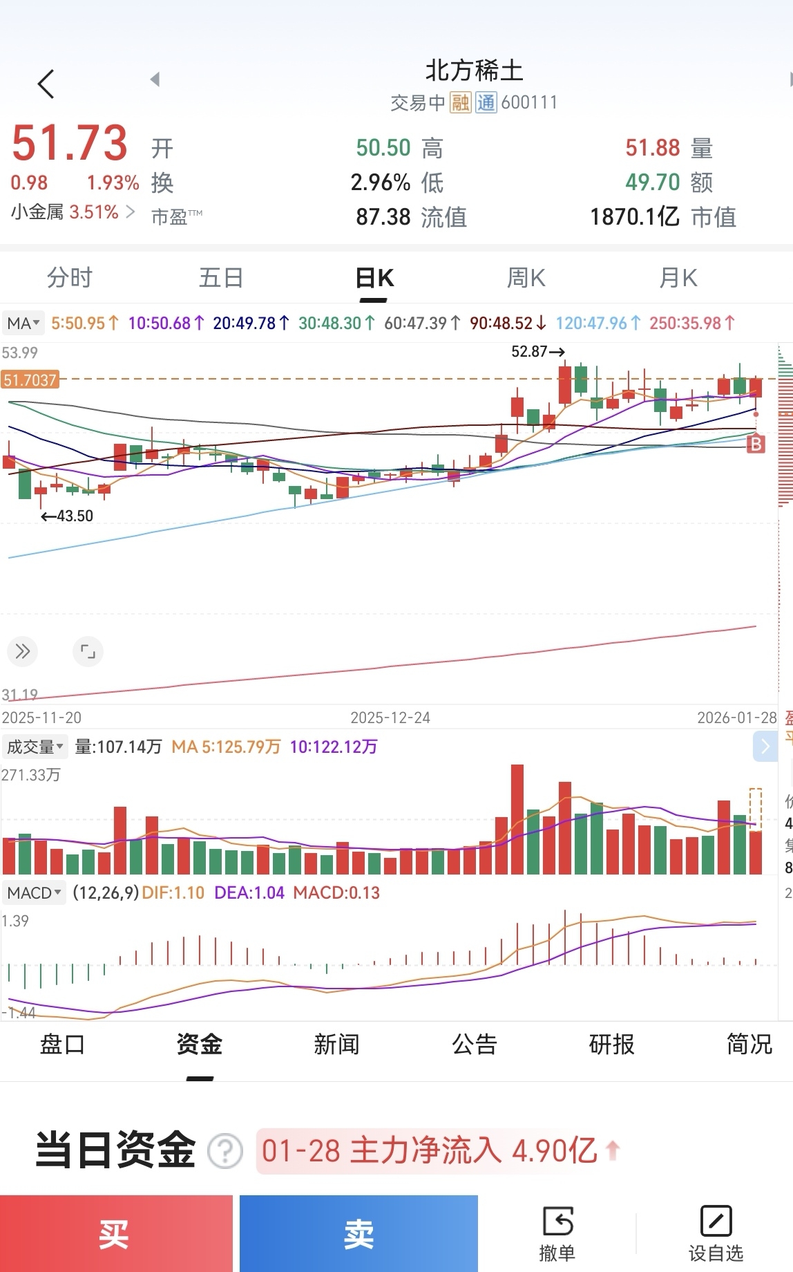 $北方稀土(SH600111)$ 没啥不敢上图的,明知道没拿到更安全的低点,就是激进的去博弈它短线向上,同时也有短线亏损出局的准备,激进的自然不能大仓位。