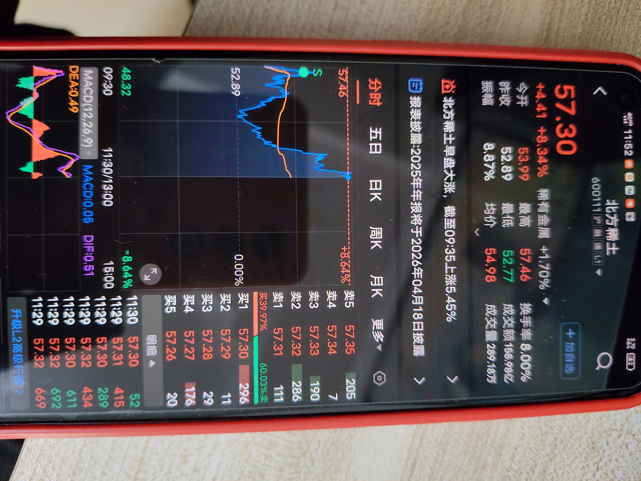$北方稀土(SH600111)$ 北方稀土我就挂55.55。请问主力他是怎么知道我我的想法呢?我预期是今天涨停。但是早盘实在是让我心慌。跌到两个点的时候呢,感觉想抄回来。犹豫了一下就涨上去。我就放弃了。然后中科磁业跌没了。我就抄进去了。