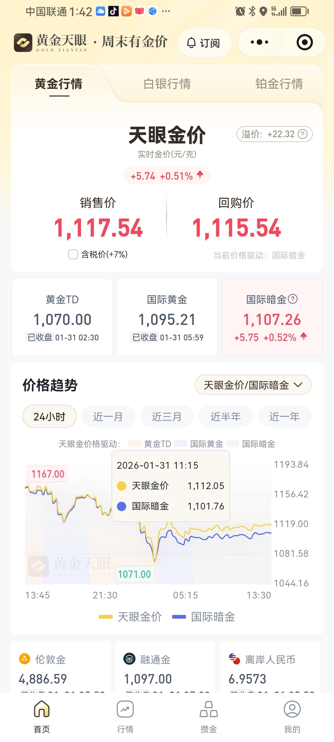黄金实时反弹开始涨了。