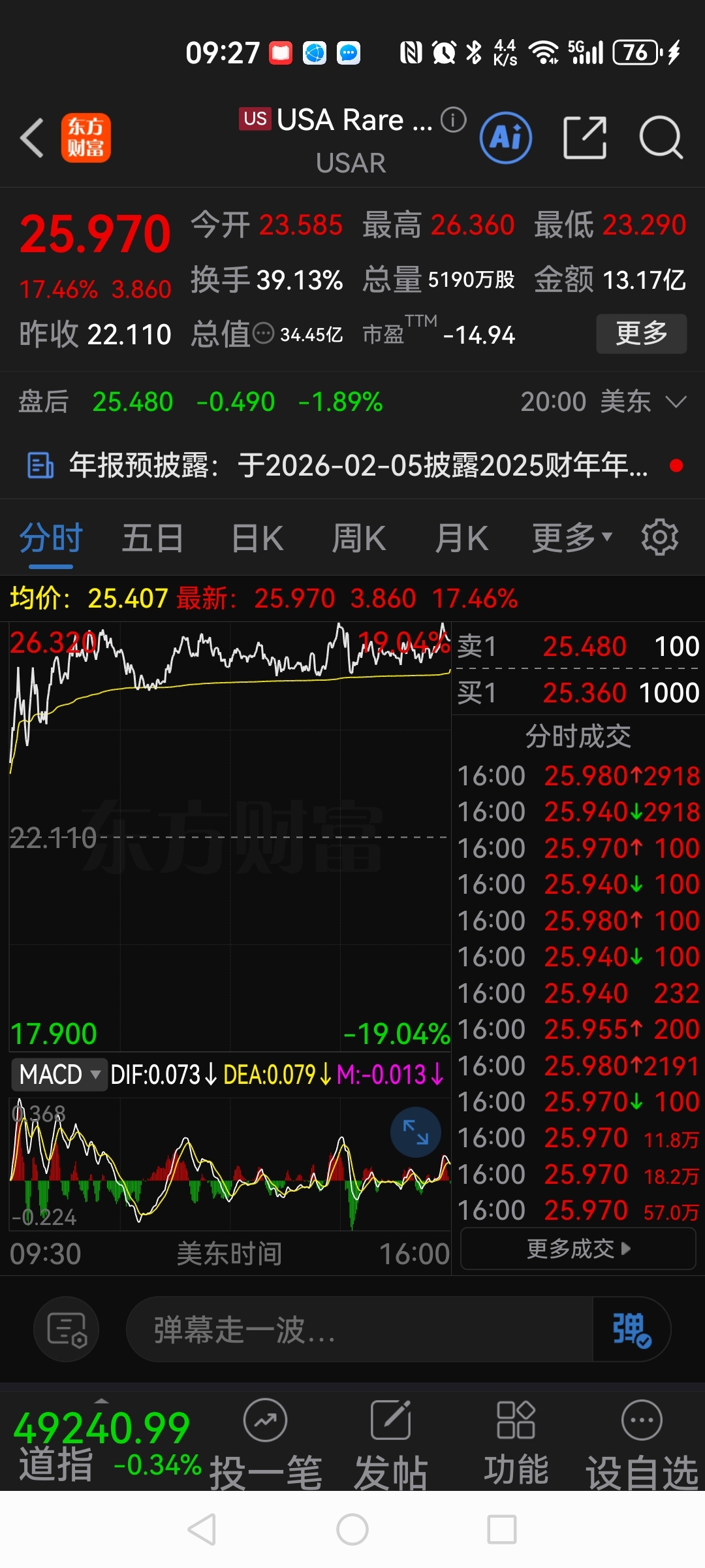 $北方稀土(SH600111)$  发生了什么?美国稀土突然大涨!