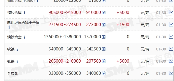 $北方稀土(SH600111)$ 黄金白银大跌,镨钕大涨又创了 2012 年 以来的新高。