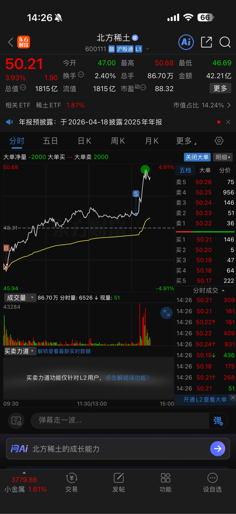 $北方稀土(SH600111)$ 我这点小钱能被主力监视?