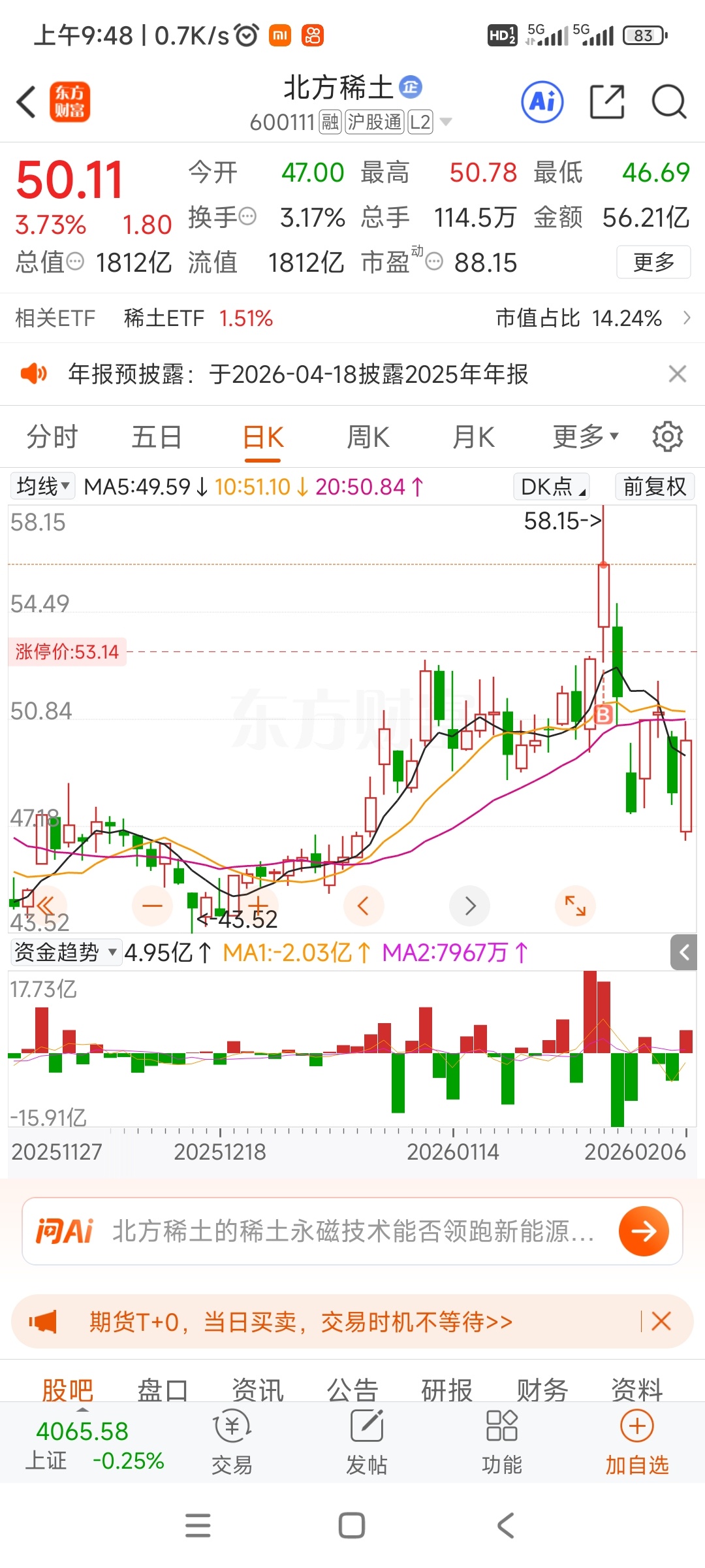 $北方稀土(SH600111)$ 我在山顶看风景,山顶好冷