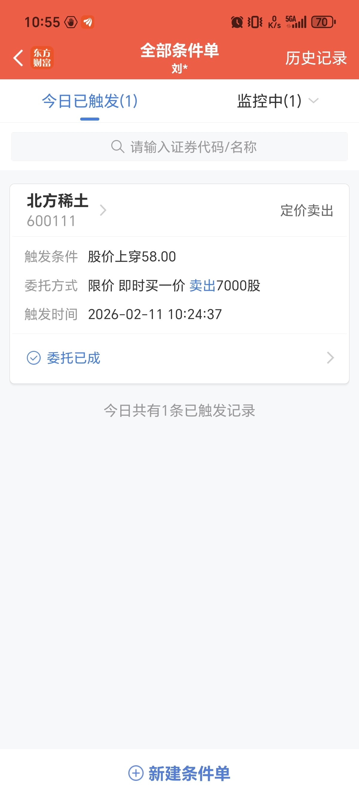 条件单触发,感谢北稀,感谢自己的坚持,加油