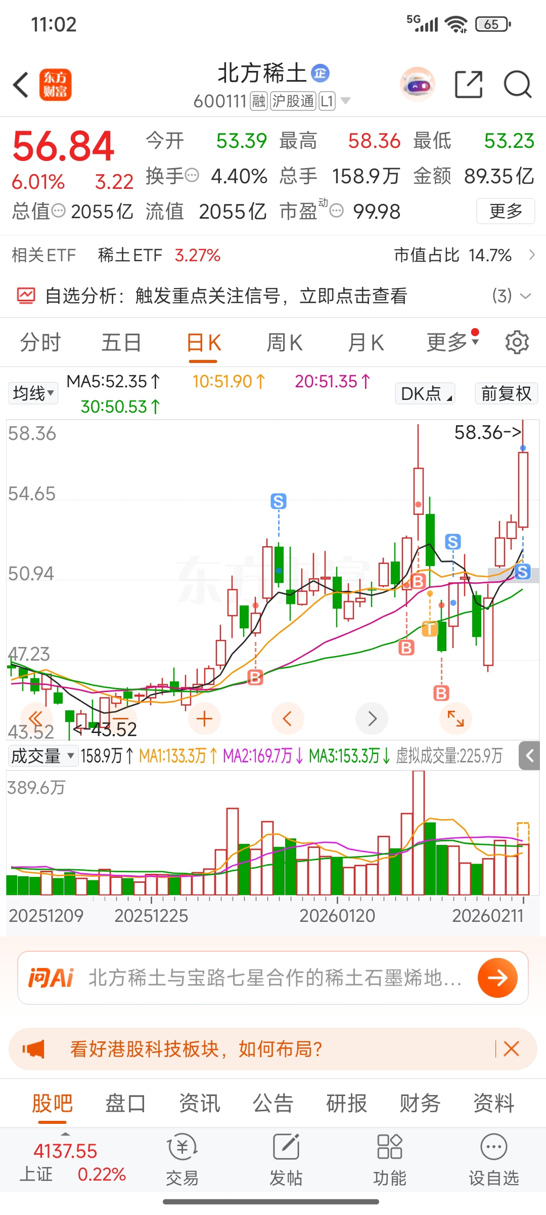 $北方稀土(SH600111)$ 上次我54.5加仓第二天被套了。今天把54.5加仓的出来,轮到别人套一下,总不能老是让我高位套着。