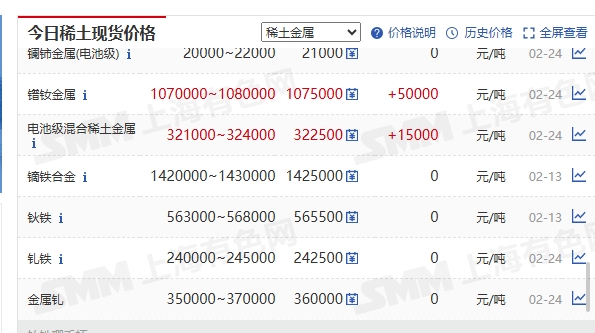 $北方稀土(SH600111)$ 镨钕金属今天又涨了 5万,我看你能跌到哪里去。