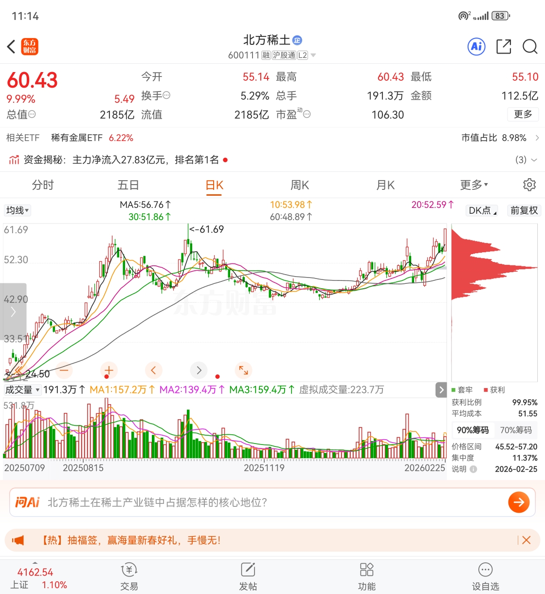 在这里也提醒一下各位股友,现在61的前高就在眼前,保持清醒,做好防守。