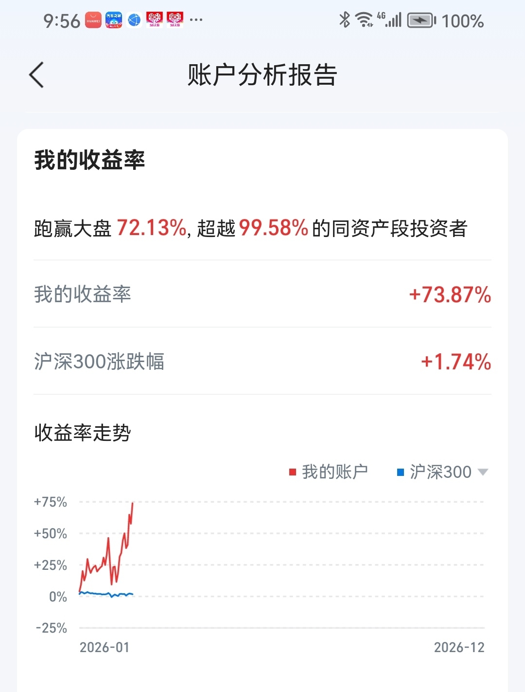 两个月的总结,今年1一2月份收益率为73.58%。3月份收益率超100%是板上钉钉没跑啦。目前持有北方稀土中国稀土包钢股份。两个月在三只票来回转悠高抛低吸,收益率比睡觉不动增加了1倍。下图截屏中信证券软件中的收益表账户分析报告。